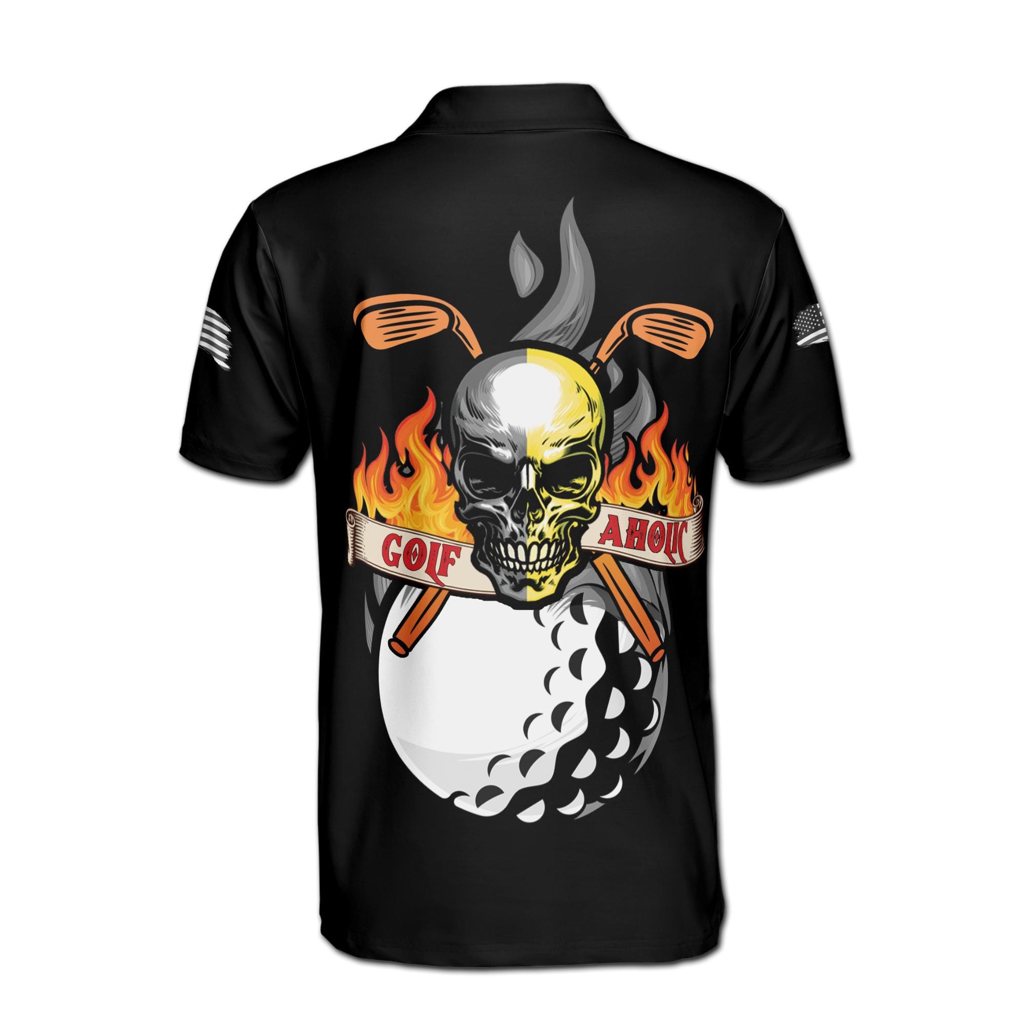 Dark Skull Golfer Golf Aholic On Fire Men’s Polo Shirt