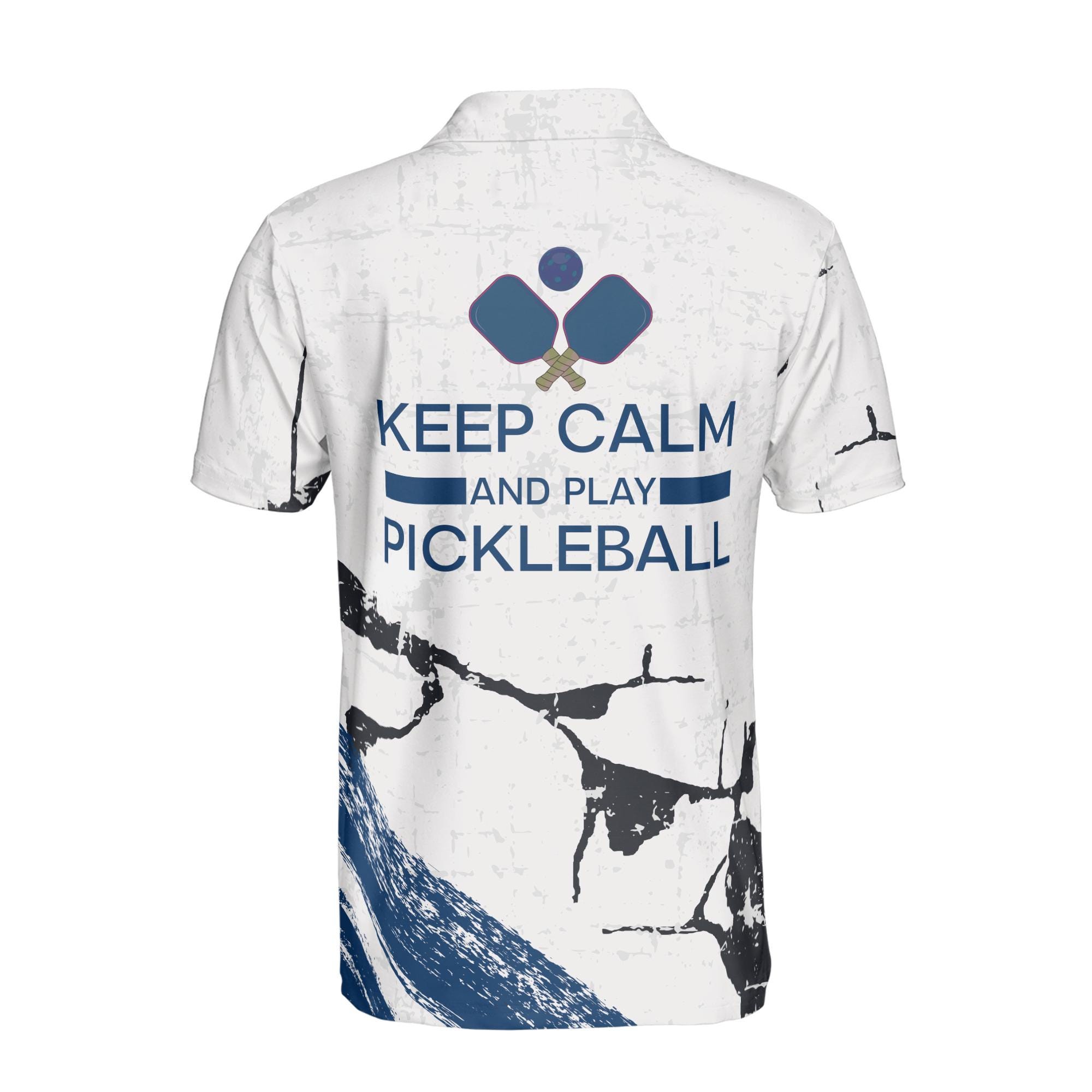 Personalized Keep Calm And Play Pickleball Blue Men’s Polo Shirt