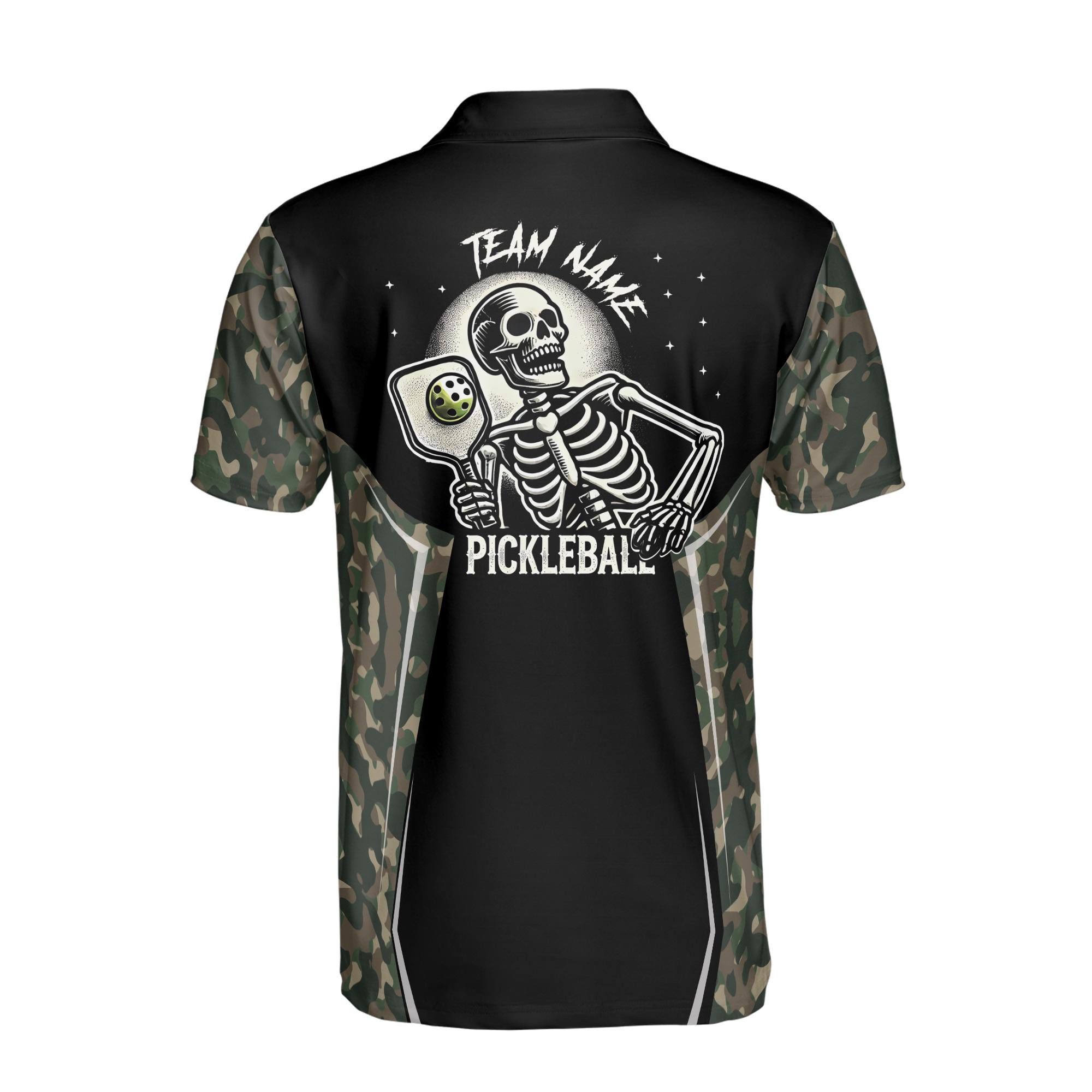 Personalized Name Camo Pattern Skull Plays Pickleball Men’s Polo Shirt