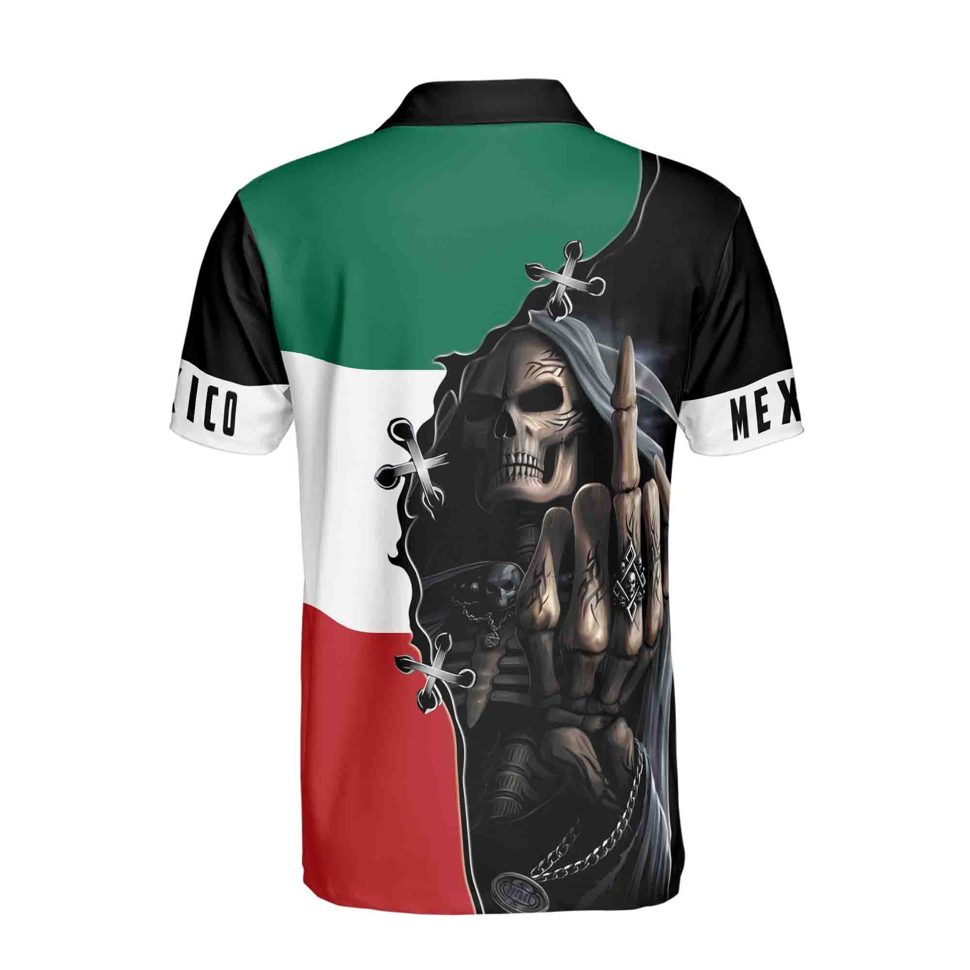 Personalized Name Mexico Skull Reaper Mexico Flag Men’s Polo Shirt