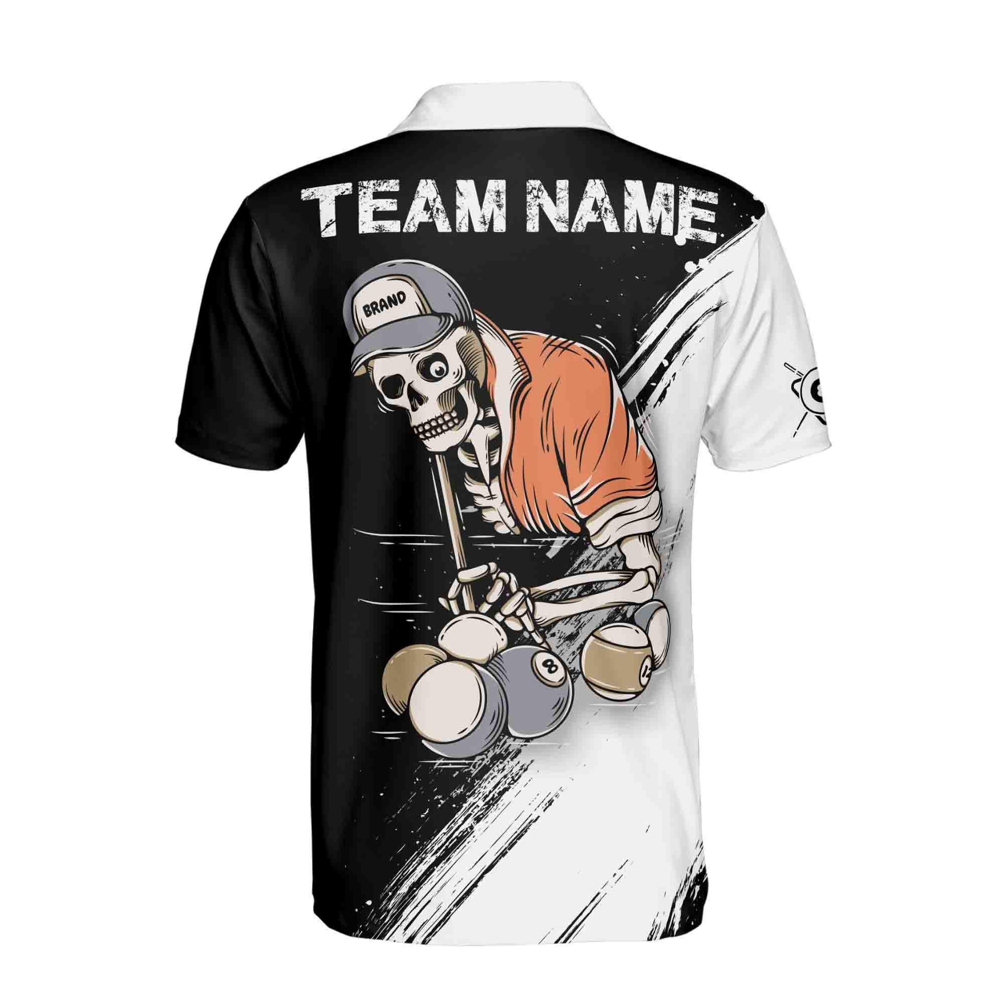 Personalized Name Team Name Skull Billiard 8 Balls Skeleton Pool Men’s Polo Shirt