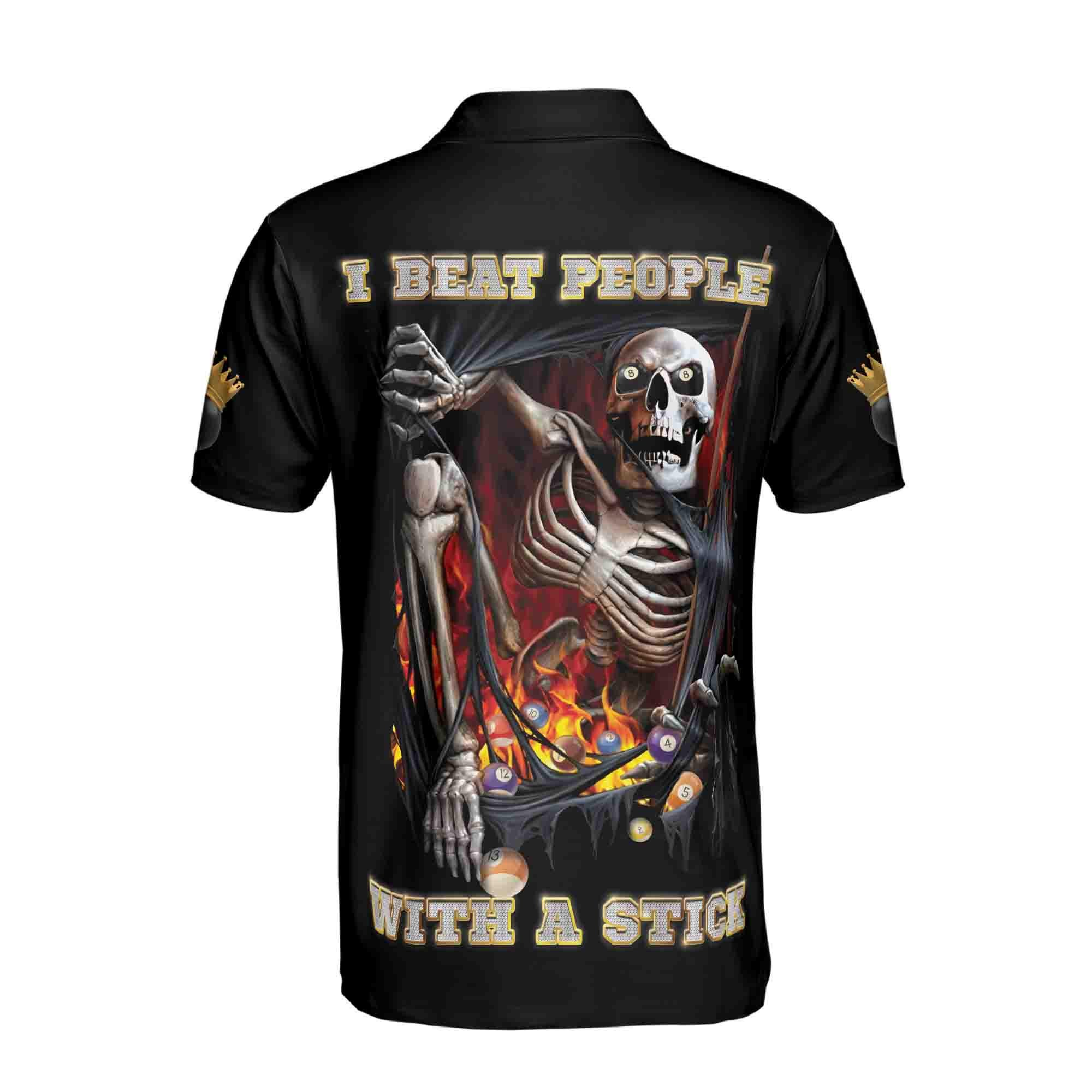Personalized Skeleton Billiard Men’s Polo Shirt: I Beat People With A Stick