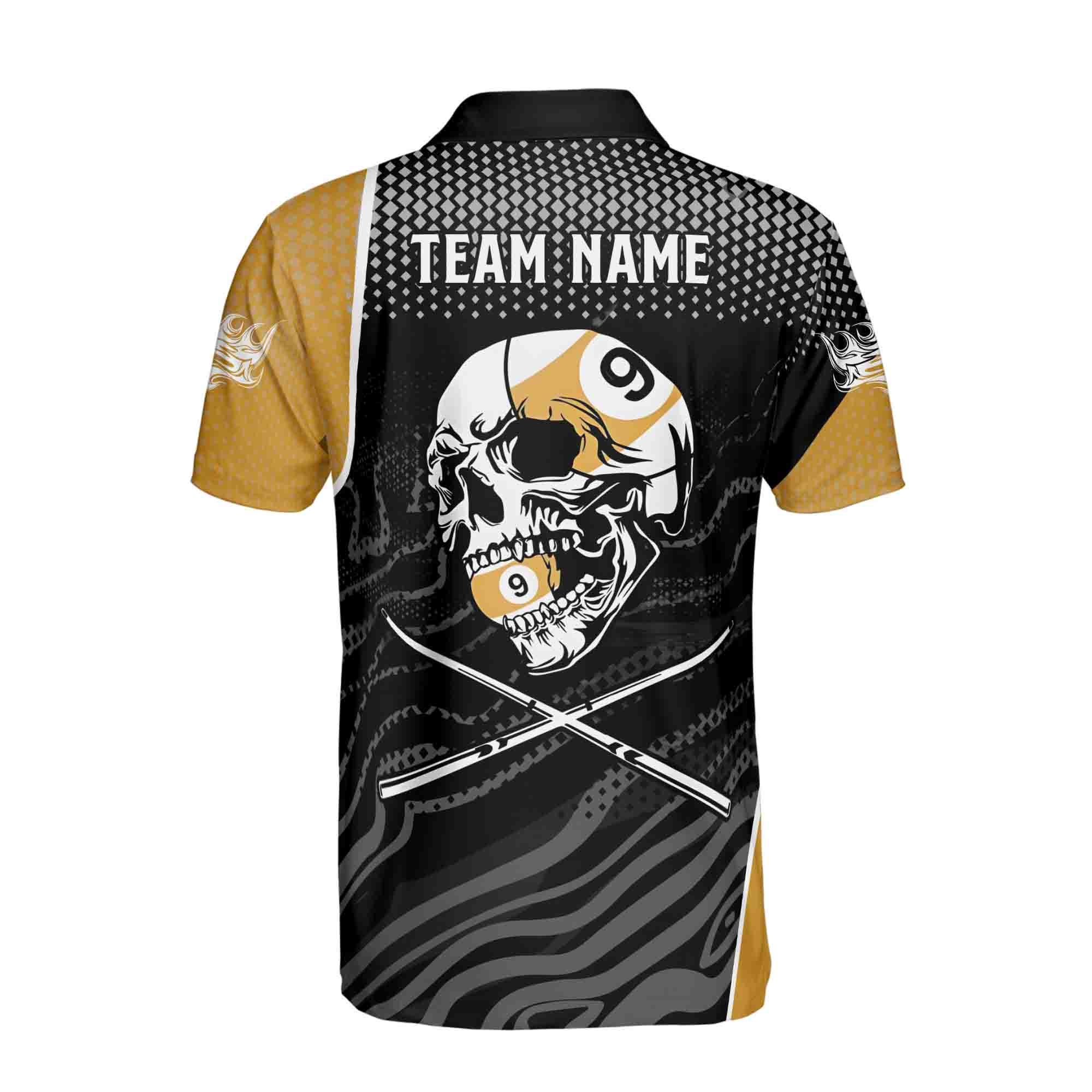 Personalized Team Name Billiard Skull 9 Balls Pool Men’s Polo Shirt