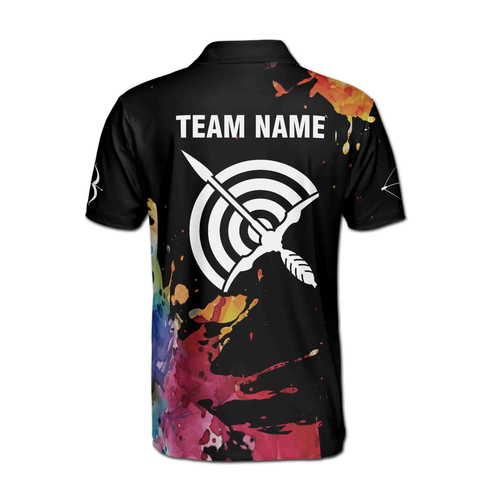 Personalizedize Name Archery Bow Arrow Board Colorful Splashes Black 3D Men’s Polo Shirt