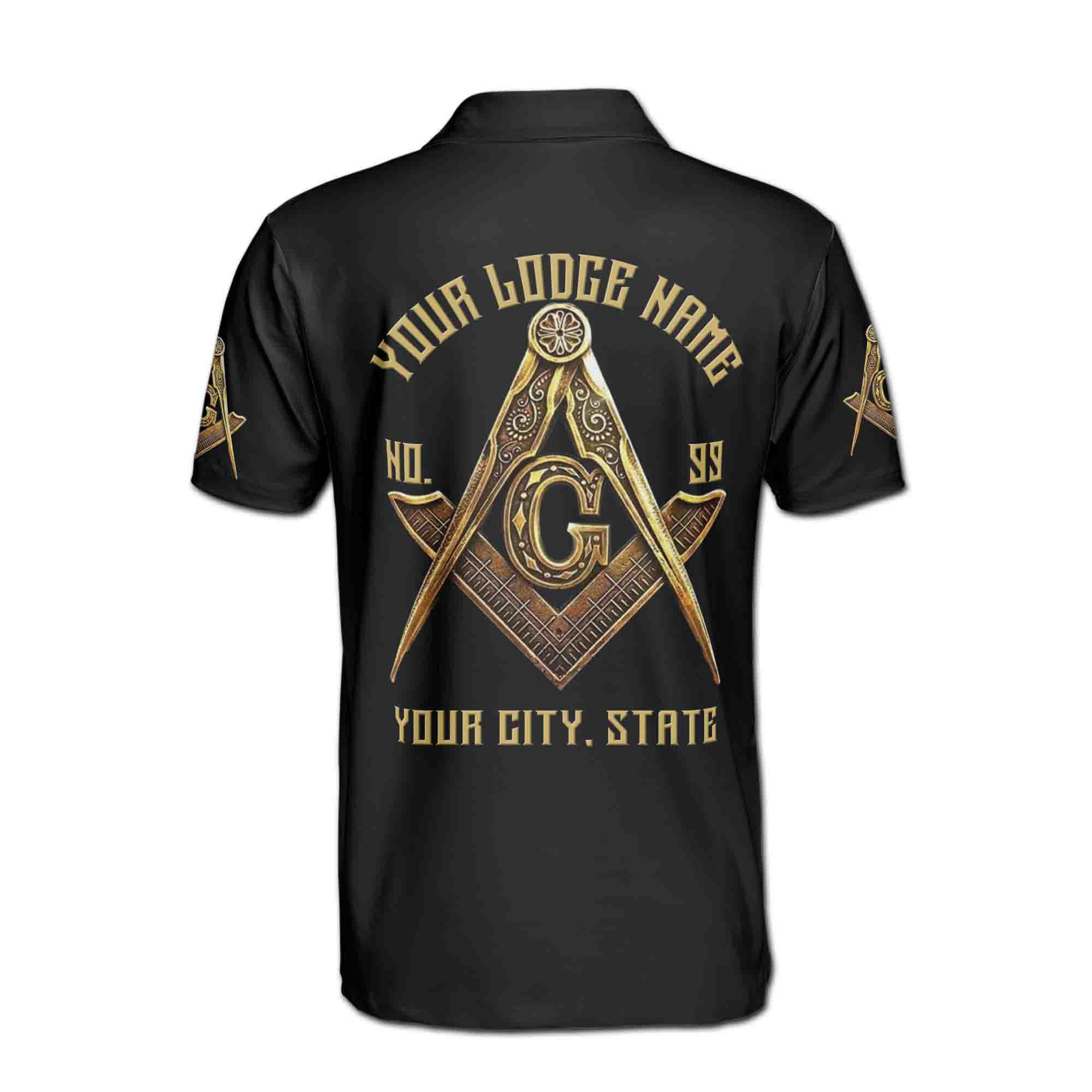 Personalizedize Name Freemason Masonic Golden Symbol Black 3D Polo Shirt