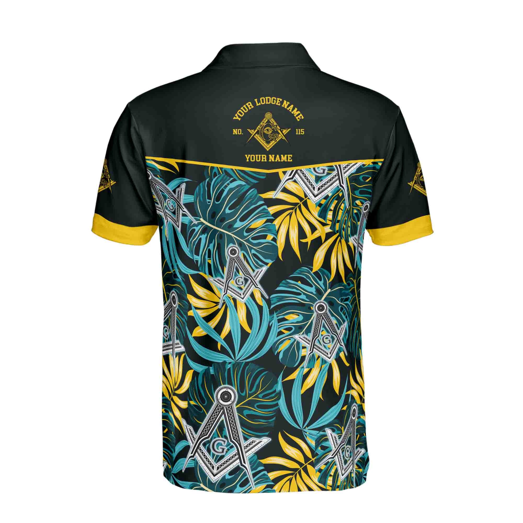 Personalizedize Name Masonic Freemasonry Lodge Tropical Plants Men’s Polo Shirt