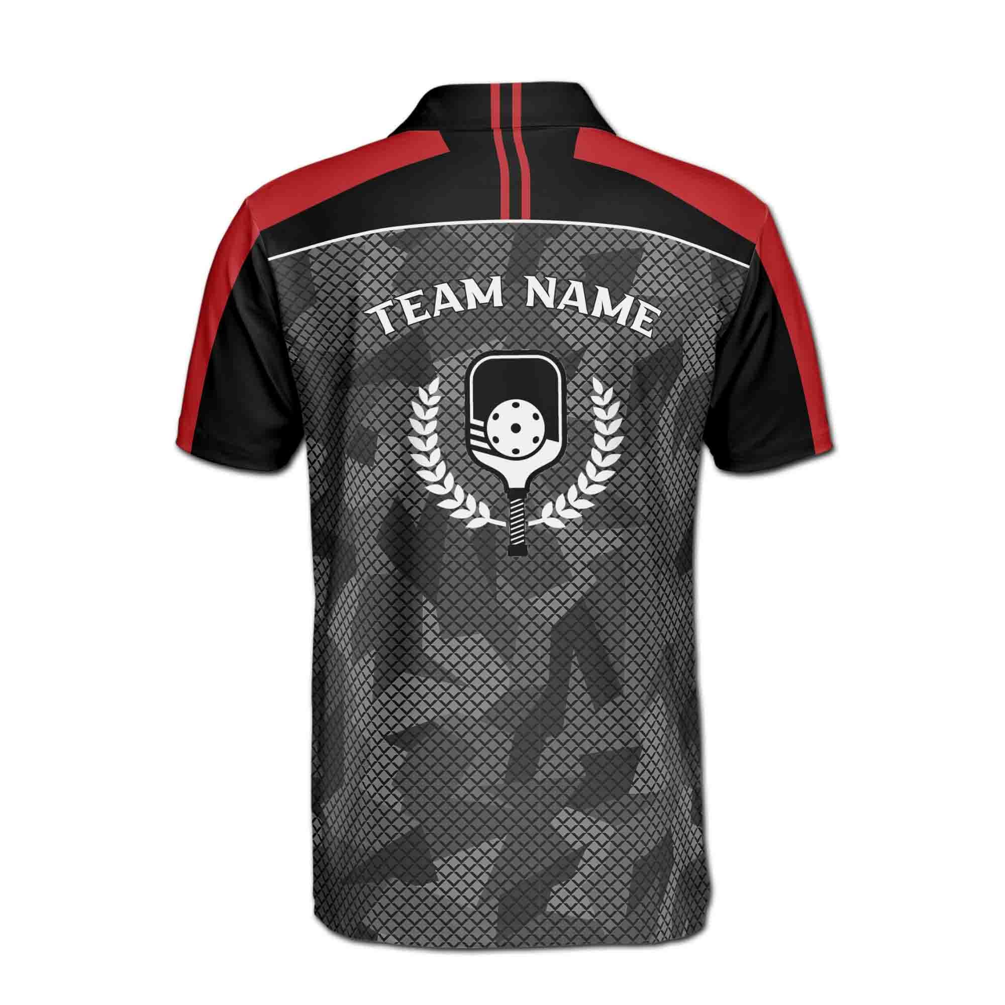 Personalizedize Name Pickleball Paddle Camo Olive Wreath Black Gray Red 3D Men’s Polo Shirt