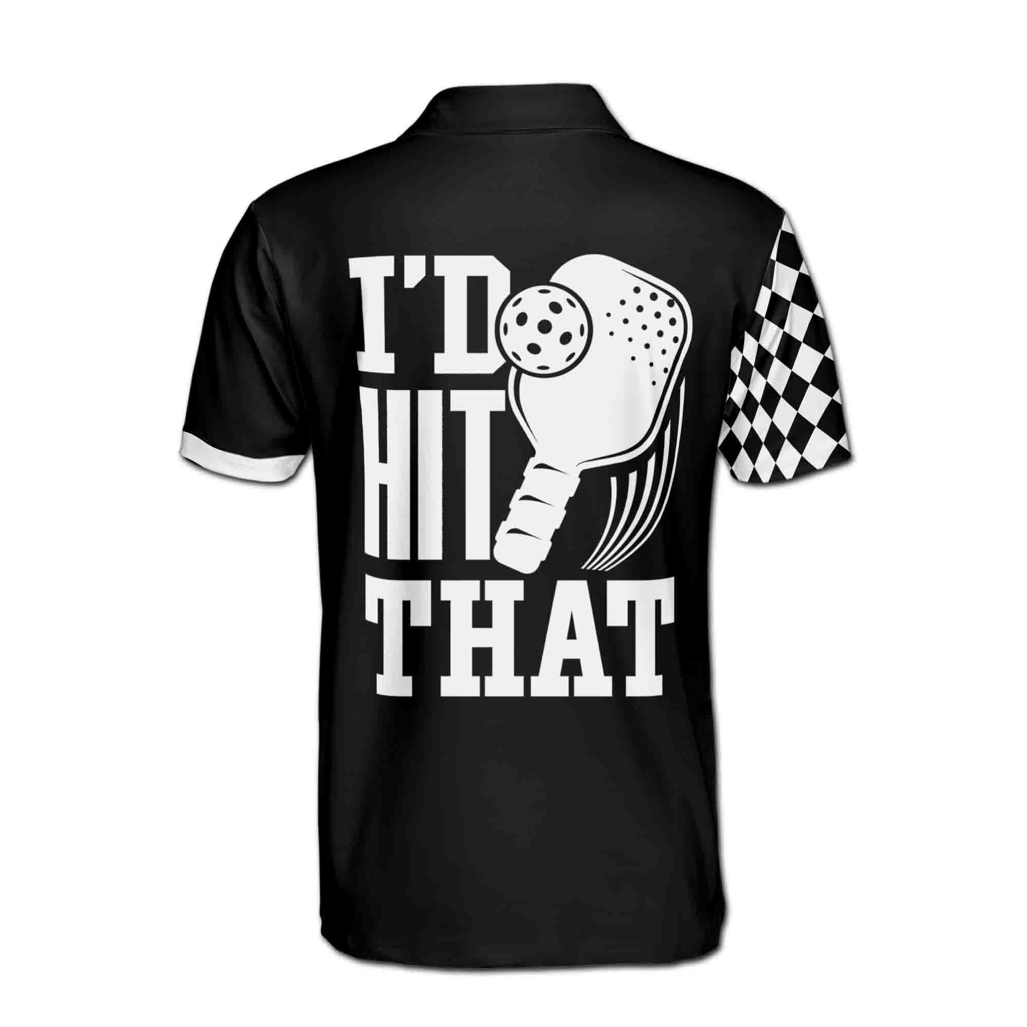 Personalizedize Name Pickleball Paddle I’d Hit That Black White 3D Men’s Polo Shirt