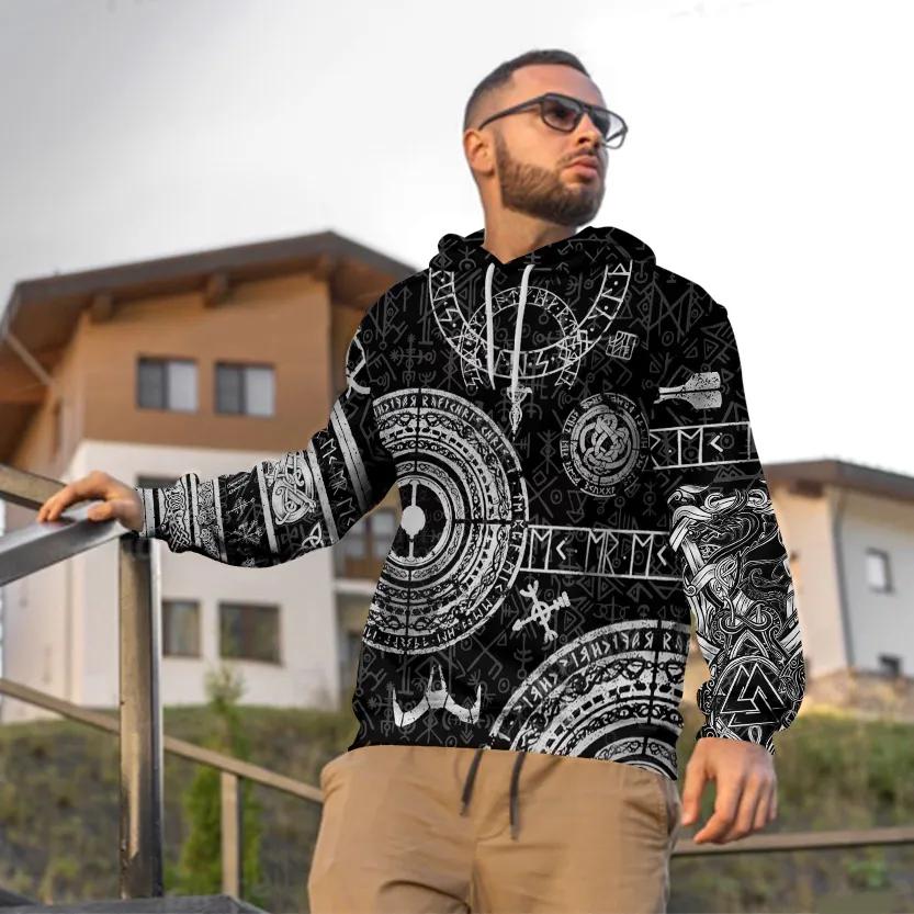 Black White Norse Runes Viking Tattoo 3D All Over Print Hoodie