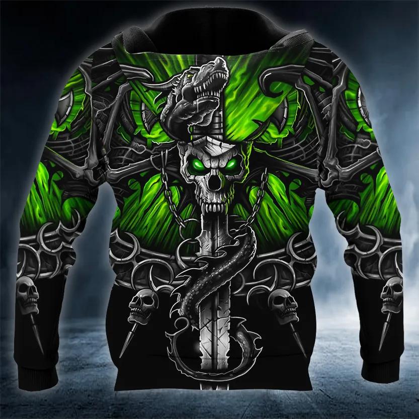 Green Eyes Ox Horn Skull 3D All Over Print Hoodie