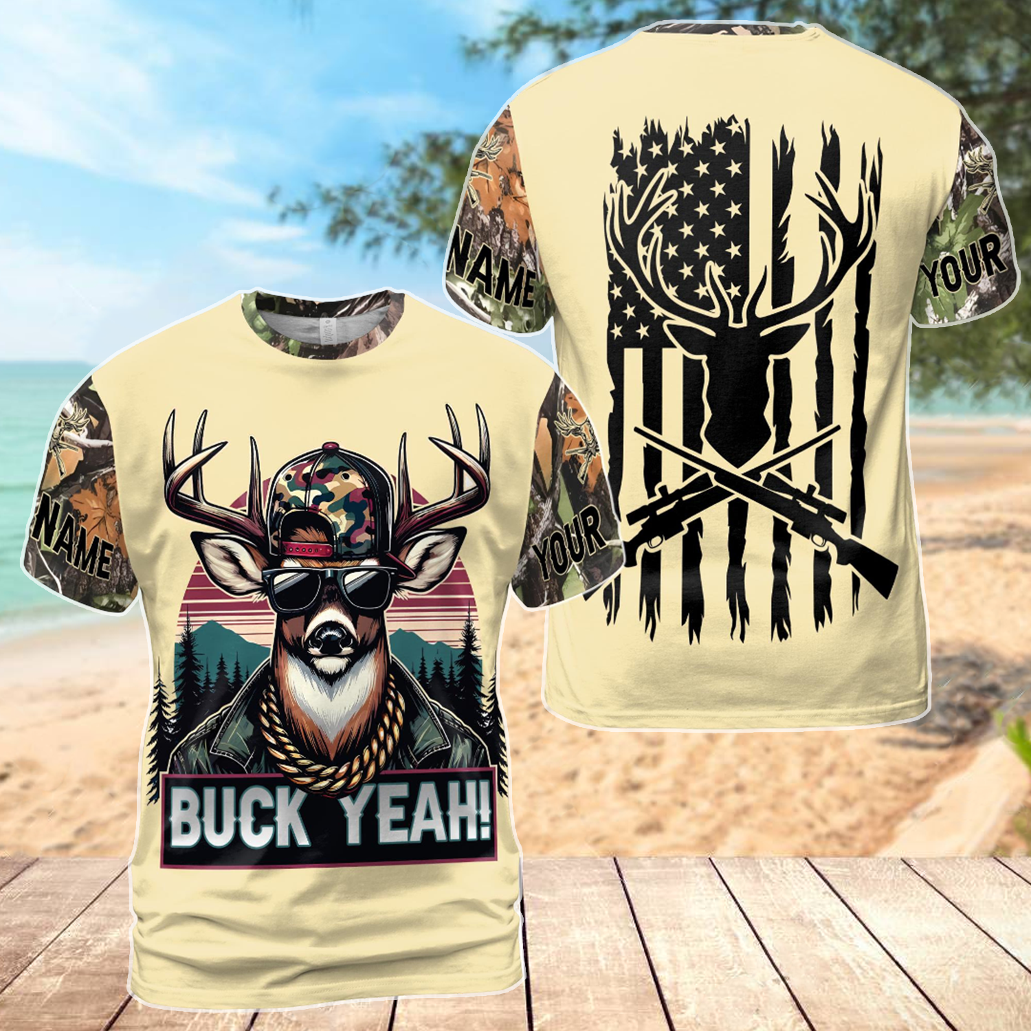 Buck Yeah” says it all — this army camo deer tee combines military-inspired patterns with serious hunting pride in one bold, personalized statement piece. Add your name and wear it as the ultimate badge of honor for the hunter who served, hunts, and never backs down from either.