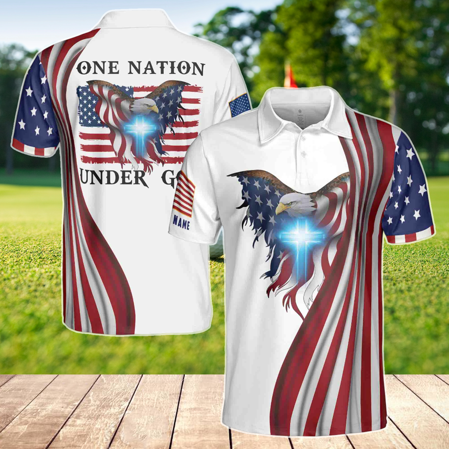 Personalized Man Play Golf Golden Pattern Men’s Polo Shirt