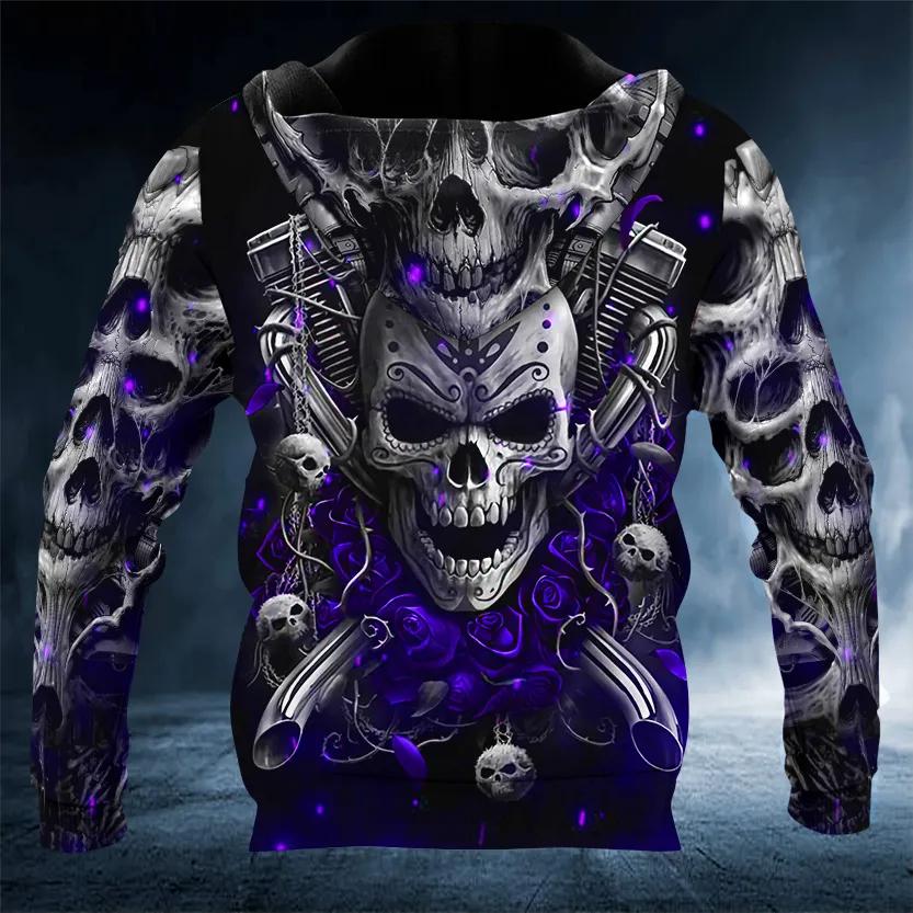 Violet Ghost Rider Skull 3D All Over Print Hoodie