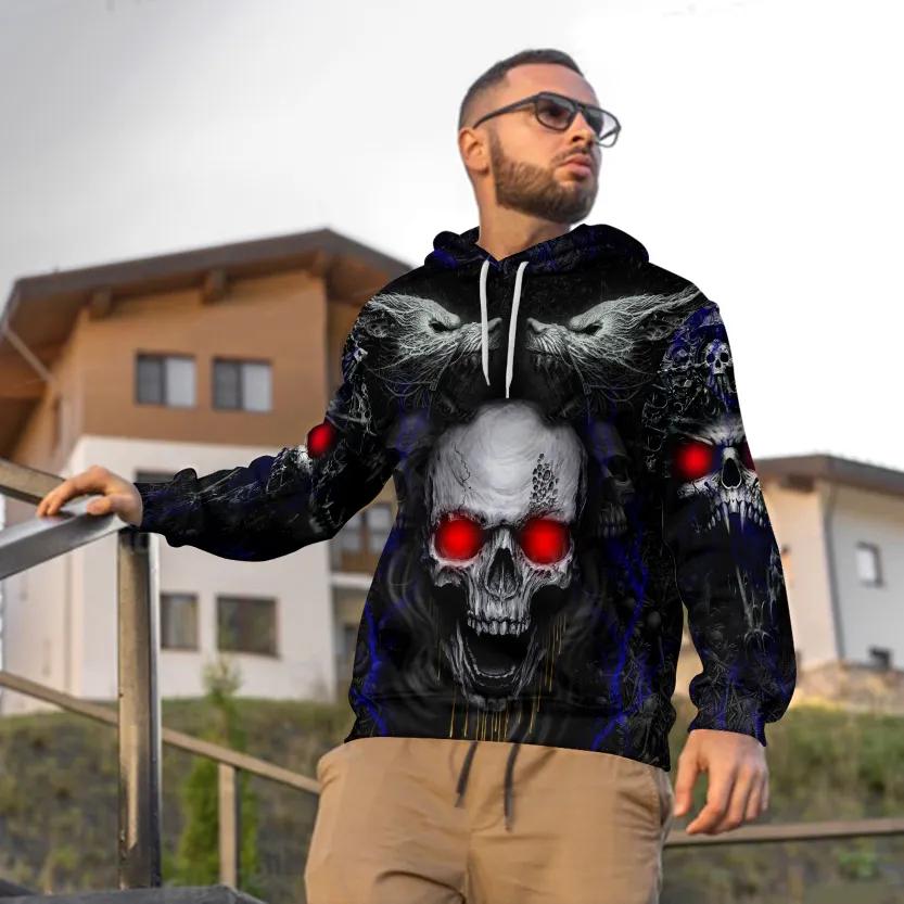 Werewolves Glowing Eyes Skull 3D All Over Print Hoodie